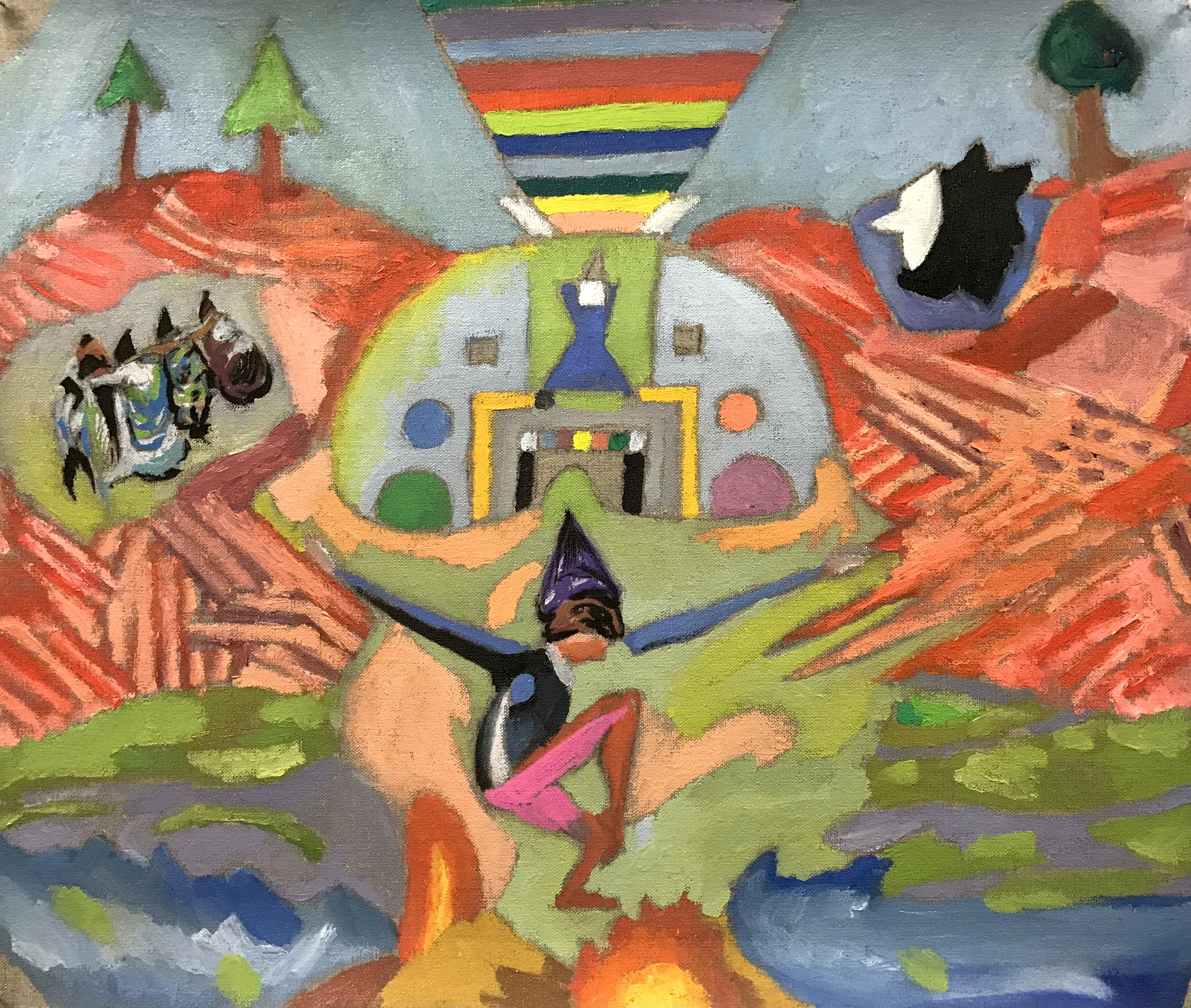 Volcano and Mountain. Oil on linen, 100 x 100 cm.